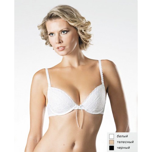 Интернет магазин женского белья RAZMER предлагает бюстгальтер пуш-ап" из эластичного трикотажного полотна и эластичного кружева, на каркасах. Чашки на дубляже с хлопком, с объемными вкладышами. Съемные бретели. Отделка - бантик.