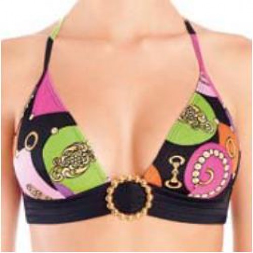 Интернет магазин женского белья RAZMER предлагает бюстгальтер купальный из эластичного набивного полотна и эластичного однотонного полотна, без каркасов. Под чашками декоративная лента с пряжкой. Бретели из цветного полотна, регулируемой длины. Отделка - пластиковая пряжка.