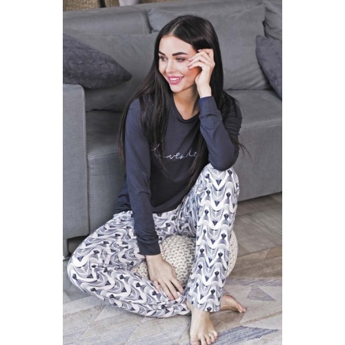 Пижама женская Leinle 604, состоит из футболки с длинным рукавом и брюк.
